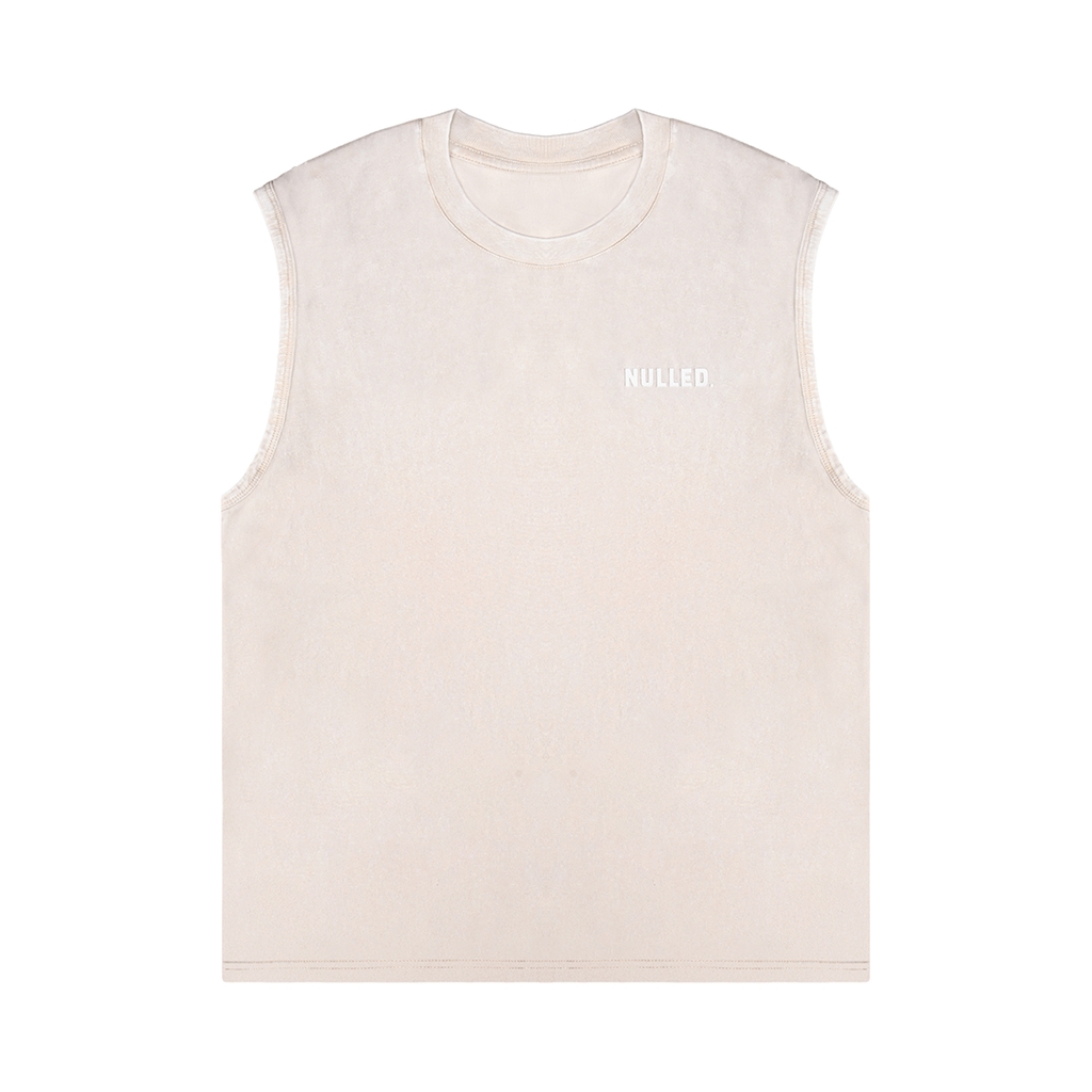 Áo ba lỗ tank top nam NULLED là lựa chọn dành cho những ai theo đuổi phong cách tự do, thoải mái nhưng vẫn giữ trọn tinh thần streetwear. Hiệu ứng wash loang màu be nhẹ tạo cảm giác bụi bặm, phóng khoáng, giúp tổng thể chiếc áo trở nên khác biệt mà không cần quá nhiều chi tiết cầu kỳ.