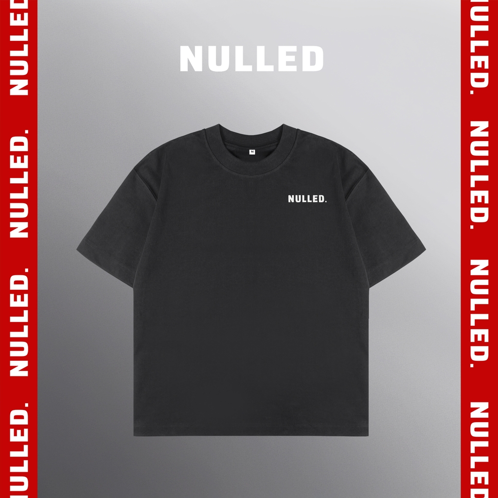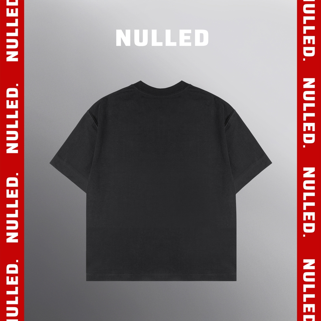 Điểm nhấn nằm ở hình in chữ NULLED màu trắng sử dụng kỹ thuật in cao ép nhiệt, giúp bề mặt chữ nổi rõ, sắc nét và bám chắc theo thời gian. Thiết kế này giữ trọn tinh thần tối giản nhưng không mờ nhạt – đúng chất “ít mà chất” của NULLED. Từng đường may 2 kim được hoàn thiện chắc chắn, giúp áo bền form và đẹp lâu dài.