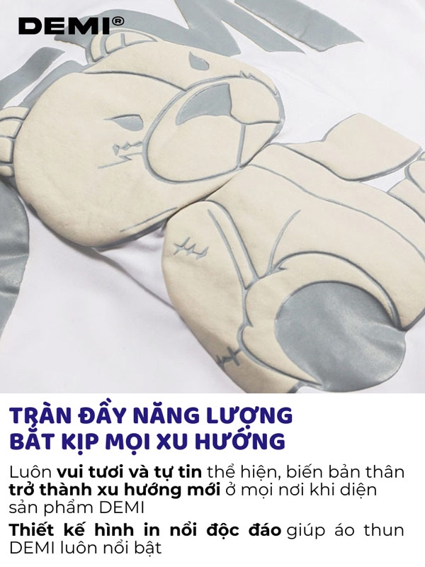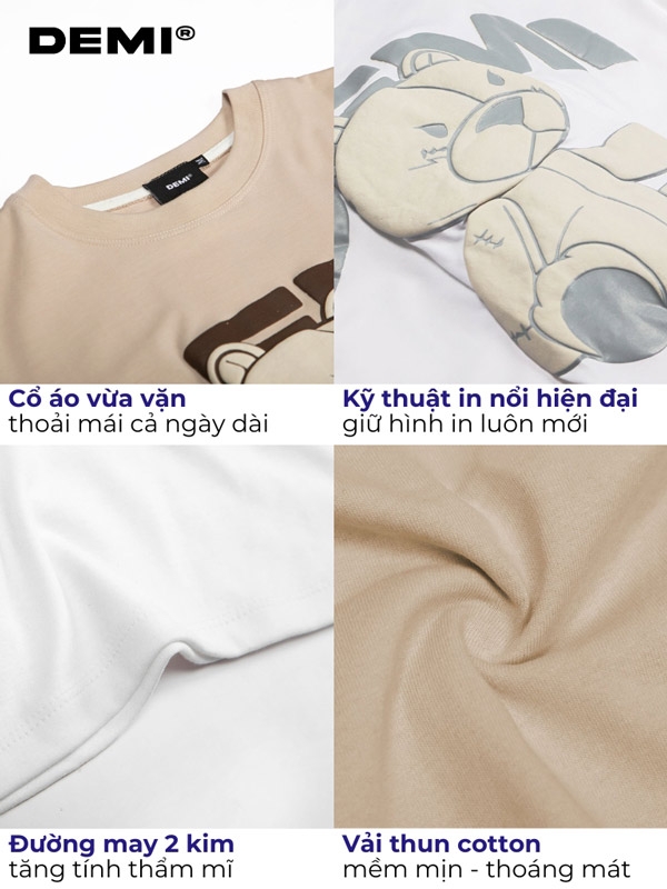 Áo thun local brand được thiết kế hình icon gấu được in nổi trên bề mặt áo tạo điểm nhấn thêm cho chiếc áo, đặc biệt không sợ bị lỗi mốt.