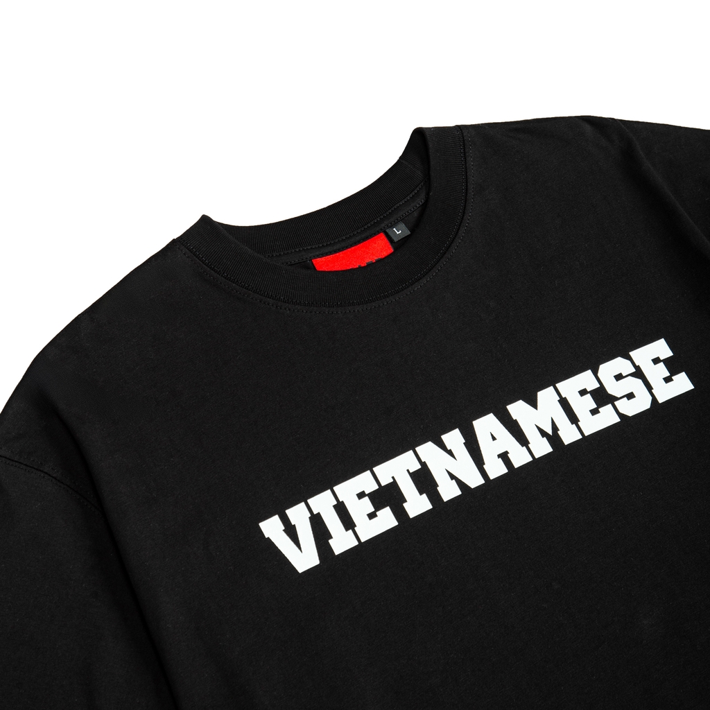 Một chiếc áo thun đen, một dòng chữ Vietnamnese, một cách thể hiện bản sắc không cần lời. Thiết kế tối giản nhưng không tầm thường – đây là lựa chọn dành cho những ai biết mình là ai và không cần phải nói quá nhiều để thể hiện điều đó.