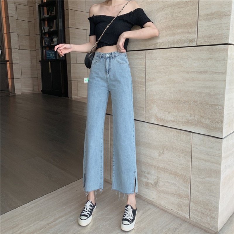 Jeans cạp cao ống rộng